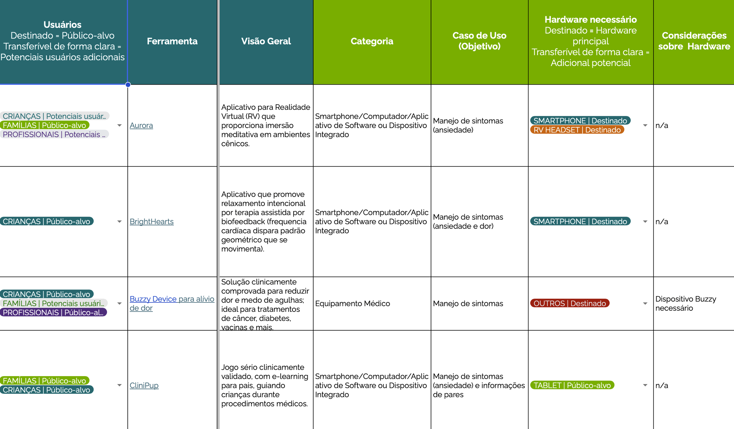 A Biblioteca de Tecnologia reúne e organiza soluções que já estão sendo utilizadas nos cuidados paliativos pediátricos hoje. Você pode explorá-la para se inspirar, identificar possibilidades de aplicação no seu contexto e reconhecer onde ainda existem lacunas para inovação.