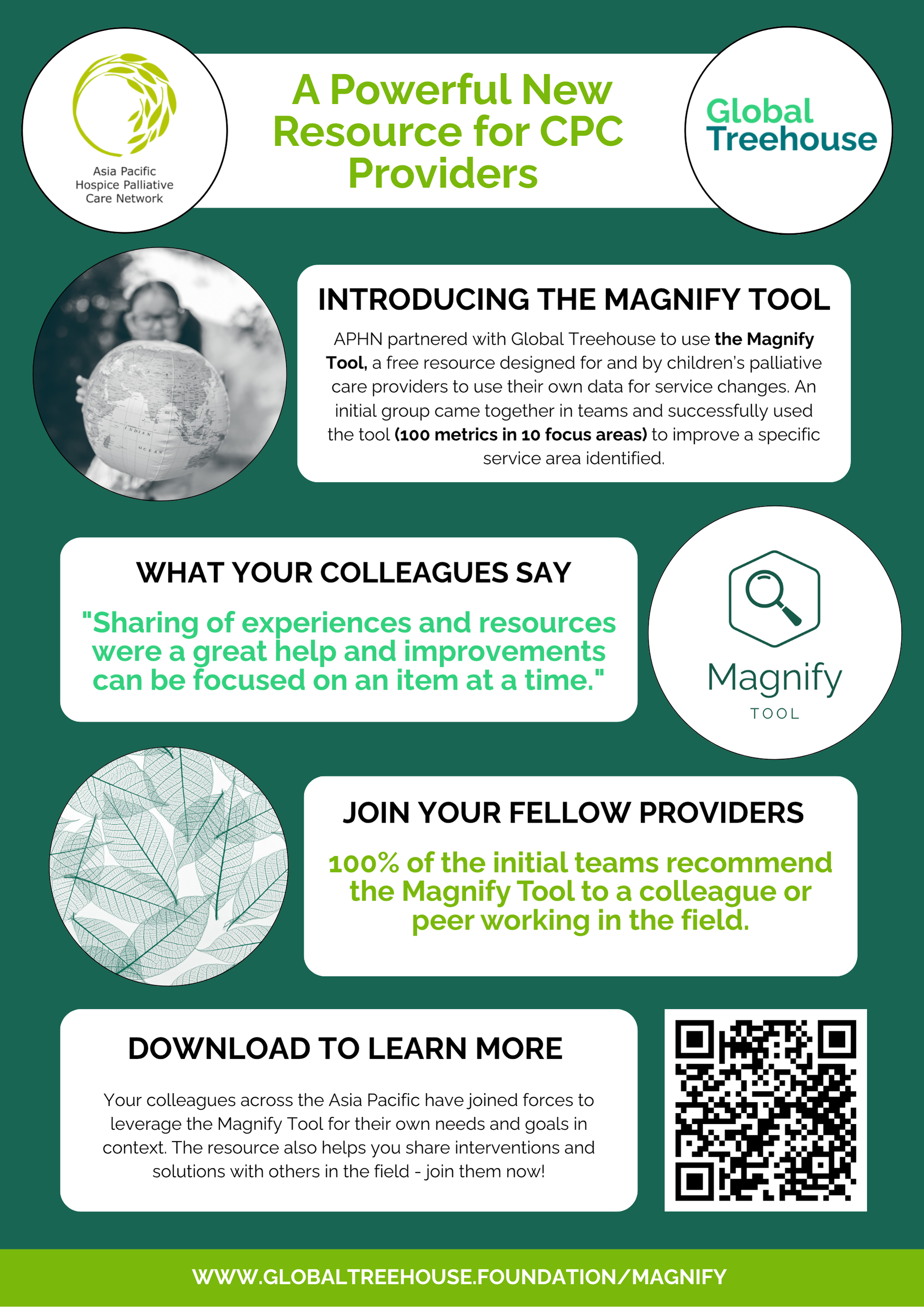 Global Treehouse and Asia Pacific Hospice Palliative Care Network (APHN) partnered together for dramatic expansion of the Magnify Tool to make impacts for children’s palliative care providers during 2025.